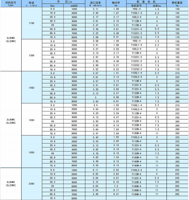 負壓風機參數